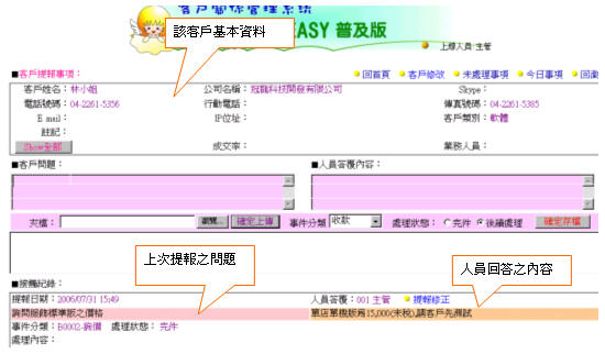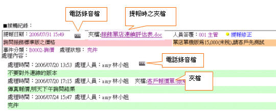 客戶若有新問題我可以馬上填入, 會連錄音檔一起存檔: